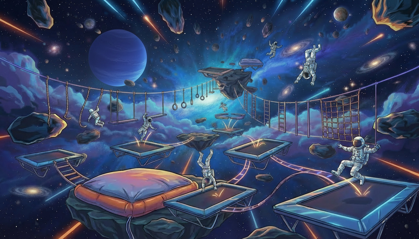 Quelques sauts sur nos trampolines, de la voltige, une pointe de fou rire entre ami(e)s et vous êtes déjà dans les étoiles ! Défiez les lois de la gravité avec nos 12 activités différentes ! Gagnez en vitesse avec la piste, en précision le parcours, en appui avec le dunk de l’espace, en confiance avec la chute libre ou encore gagnez en synchronisation avec le twister ! Saurez-vous toutes les dompter ?